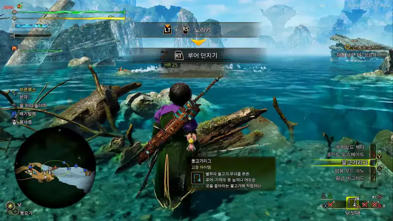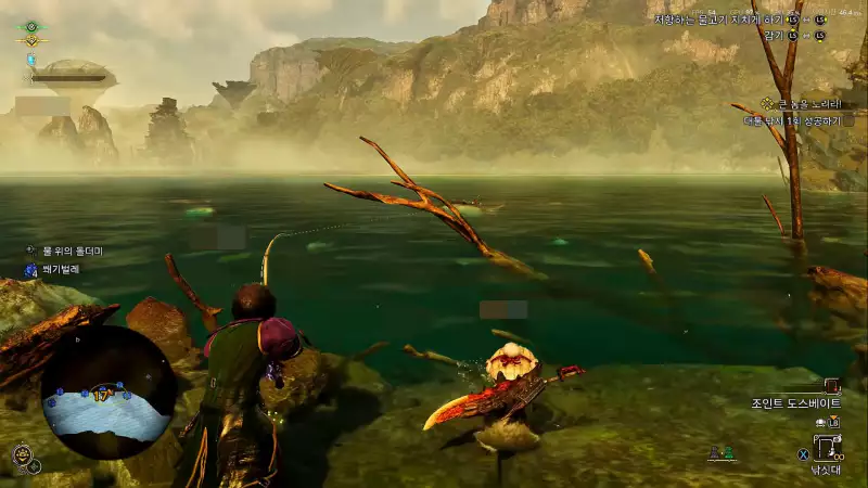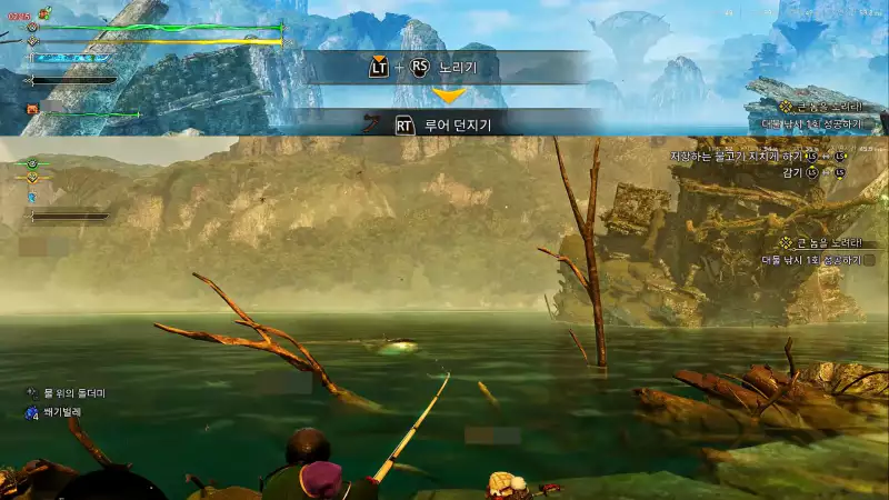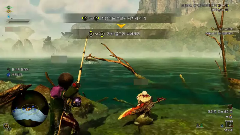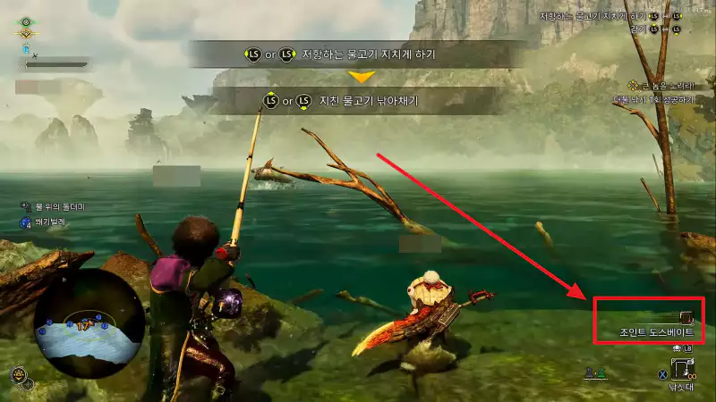 낚싯대를 위아래로 흔들어서 큰 물고기가 물도록 미끼를 던질 수 있습니다. 일반적으로 작은 미끼는 무시하고 릴을 감는 데 더 많은 노력이 필요합니다. 미션 시작 시 받을 수 있는 조인트 도스베이트를 사용하는 것이 좋습니다.