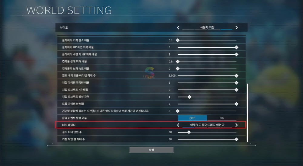 | 팰 기력 감소 배율 | 0.1~5 |