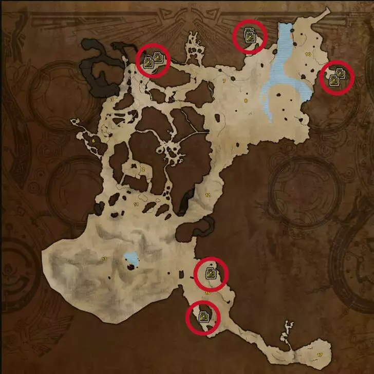 플레이어는 해당 지역에서 안전하게 야영할 수 있으므로, 고대의 용골 유물을 수집할 때 이 지역에서 안전하고 지속적으로 파밍할 수 있습니다. 그 후에는 캠프 동쪽과 남쪽 근처에 더 많은 뼈 더미가 있습니다!