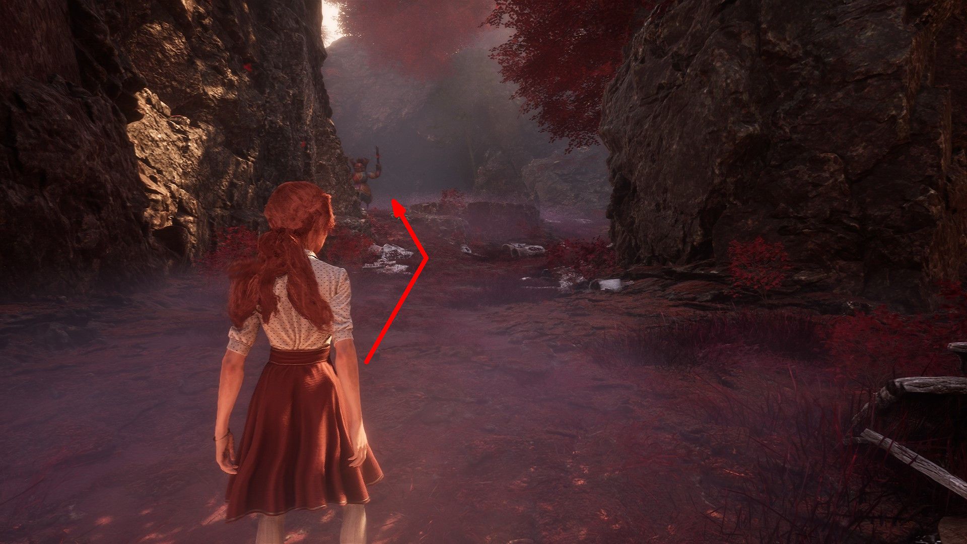 플레이어는 위에서 언급 한 목재 구조물의 입구를 마주보고 왼쪽으로 90도. 그런 다음 플레이어는 자신 앞에있는 경로를 따라 루미나의 색상으로 난간에 도달해야합니다.