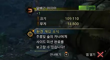 미식 탐구도 낚시의 즐거움 사이드 미션에 필요