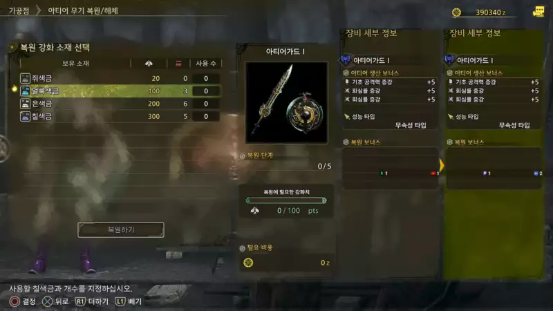 아티어 무기를 업그레이드하려면 강화 재료라는 다른 유형의 재료를 사용해야 합니다. 아티어 무기를 업그레이드하려면 재료를 사용하여 아티어 무기 레벨을 올리는 데 필요한 포인트를 채워야 하므로 방어구 업그레이드와 동일한 방식으로 작동합니다.
