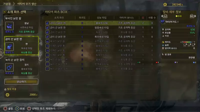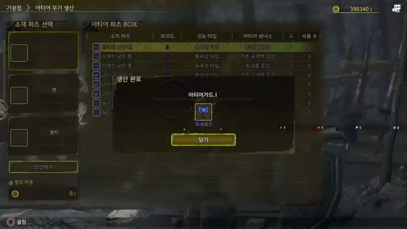 상위 티어 아티어 무기 제작