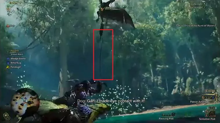 이 괴물을 더 쉽게 죽이려면, 플레이어는 슬링거를 사용해 몬스터를 쓰러뜨릴 수 있습니다. 이렇게 하려면 위와 같이 슬링어로 조준하고 하르푸스 또는 바오노스를 가리킨 후 “F” 키 또는 원 버튼을 눌러야 합니다.