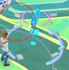 마그네틱 루어의 이펙트는, 자석이 주위로 움직이고 있는 것이 특징. 이러한 효과를 보면 마그네틱 루어가 포켓 스톱에 꽂혀있다.