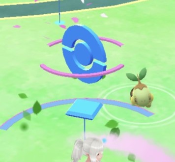 허블 루어의 효과는 잎이 춤추고있는 것이 특징. 이러한 효과를 보면, 허브 루어가 포켓 스톱에 꽂혀있다.