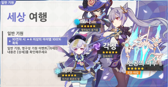 세상여행은 상시로 이용할 수 있는 일반 뽑기. 다른 뽑기와 비교하면 배출 캐릭터가 나쁘기 때문에 최대한 뽑기는 자제하는것이 좋다. 원하는 뽑기가 올 때까지 기다리는 것을 추천 한다 .