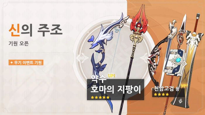 | ★★★★★ | 0.6% | 캐릭터 무기 |